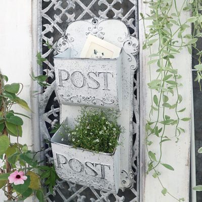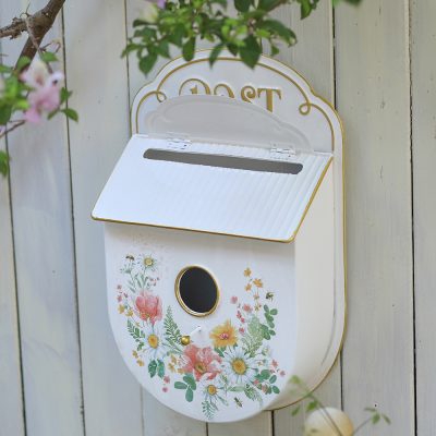 Vintage Letter Box Wall Mounted White Metal “Post Courier” Mail Box With Flower Decoration