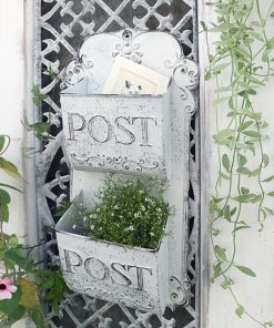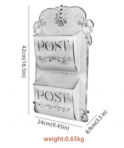 Vintage Letter Box Wall Mounted White Metal “Post Courier” Mail Box With Flower Decoration