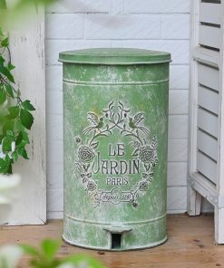 Trash Can 17L Retro Kitchen Trash Can with Lid and Pedal Round Touchless Garbage Cans with Flower and Bird Patterns Outdoor Trash Can for Kitchen Park Garden