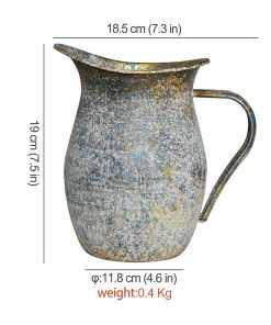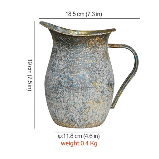 Blue & Gold Rustic Pitcher Vase for Flower Water Jug Flower Vase Vintage Style Home Garden Decor Gift Idea