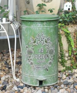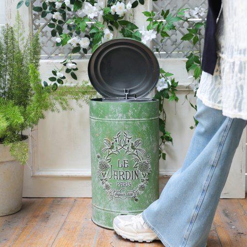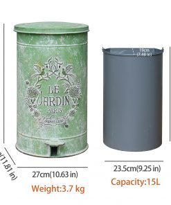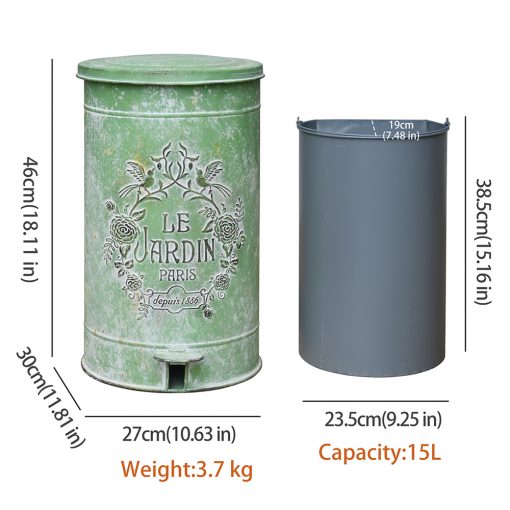 Trash Can 17L Retro Kitchen Trash Can with Lid and Pedal Round Touchless Garbage Cans with Flower and Bird Patterns Outdoor Trash Can for Kitchen Park Garden